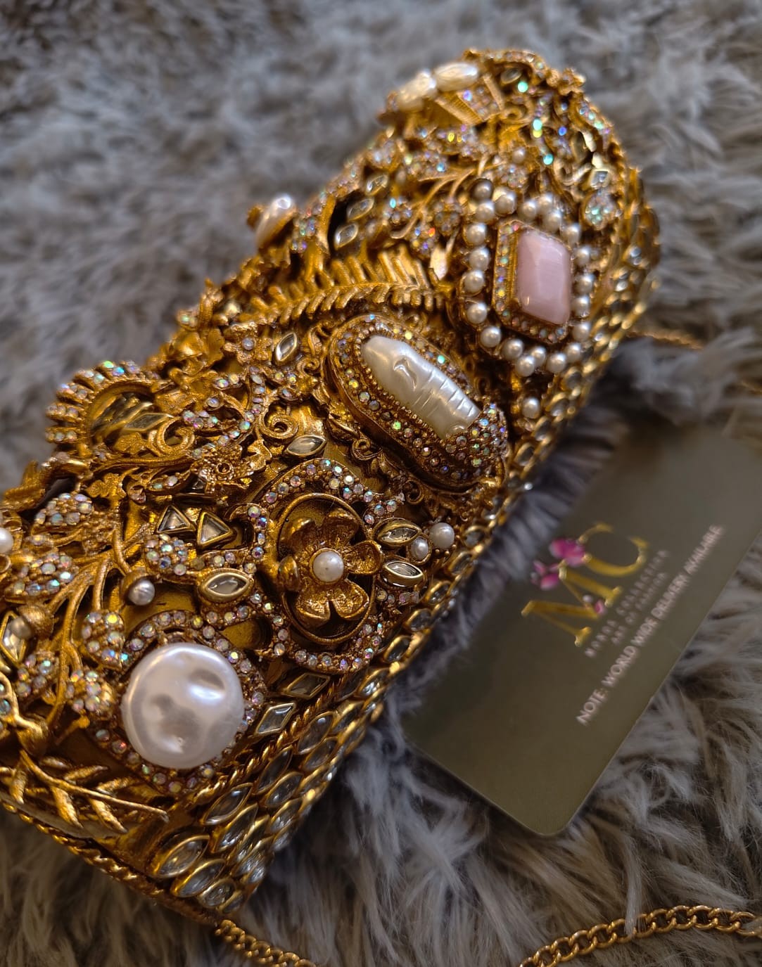 This big-size cylinder clutch features heavy, one-of-a-kind stone detailing, handcrafted to stand out with timeless elegance and rich texture.🧚♀️🧚♀️