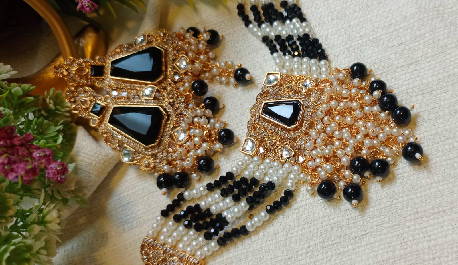 Be the first to review “Choker with heavy earrings pearl”