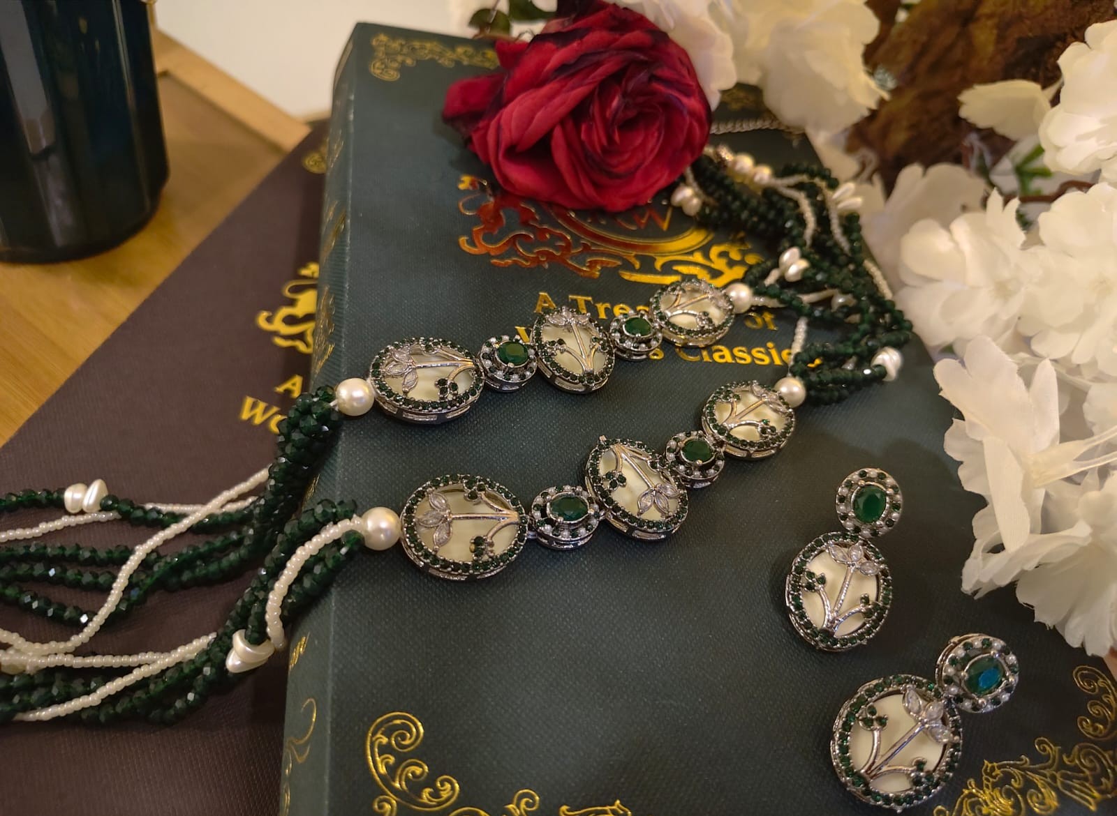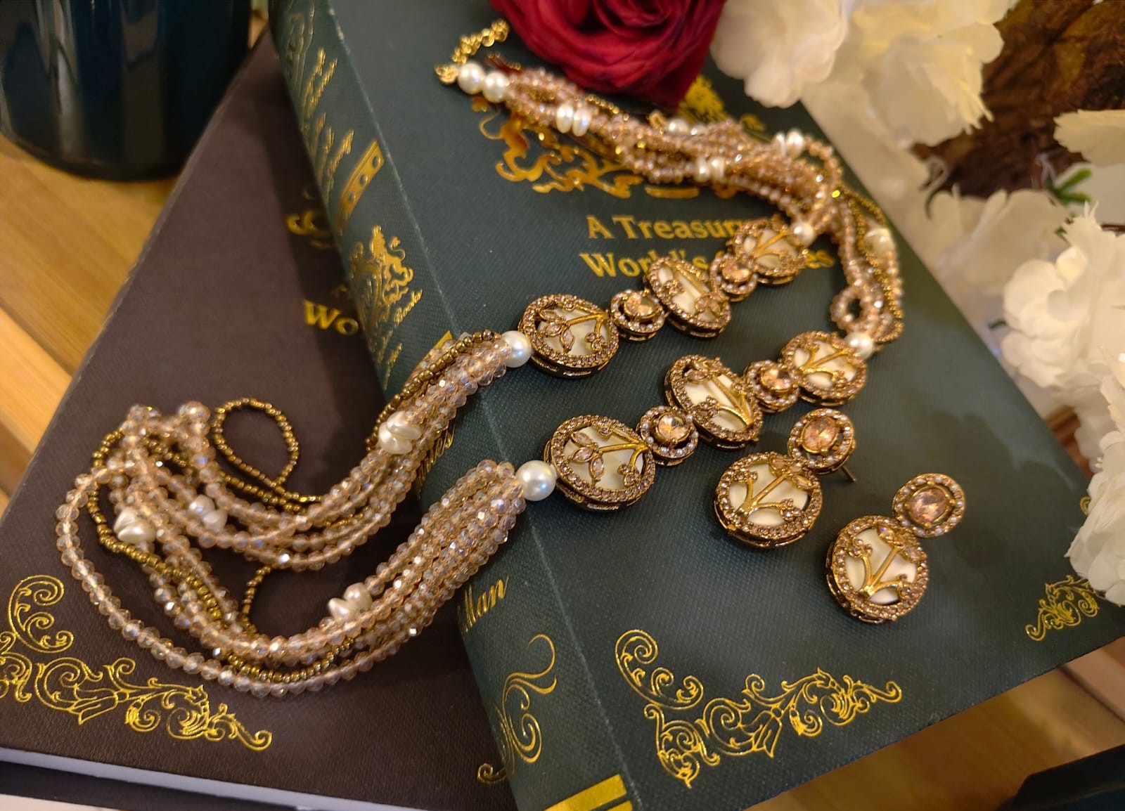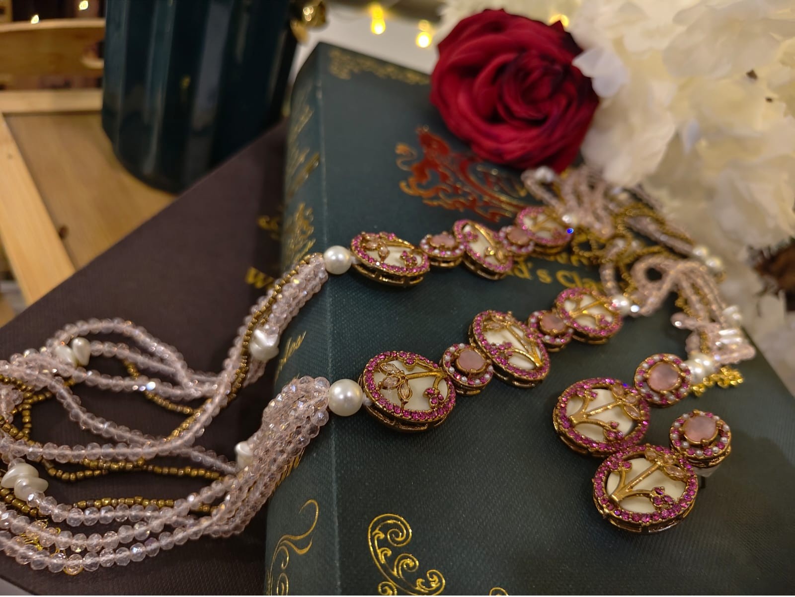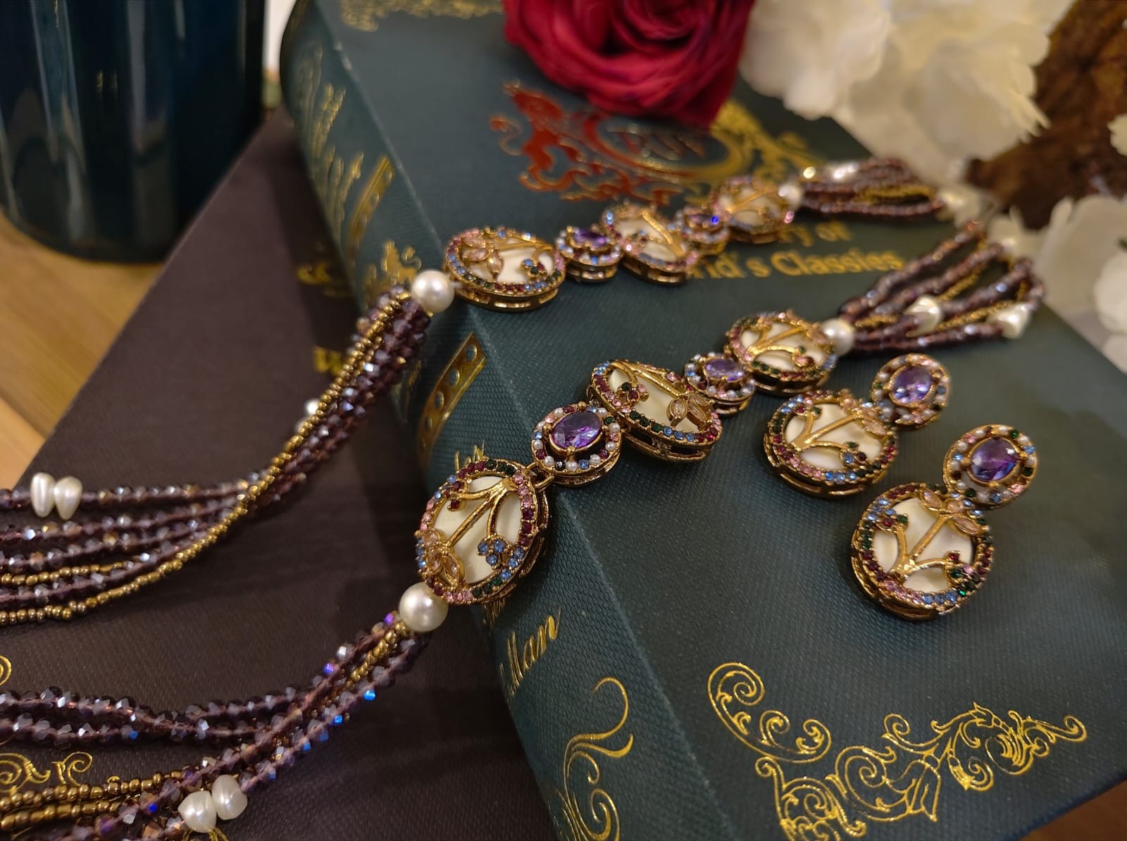 Where vintage charm meets royal artistry — hand-set stones, delicate motifs, and pearl strands come together to create a statement that feels treasured, timeless, and truly unforgettable.