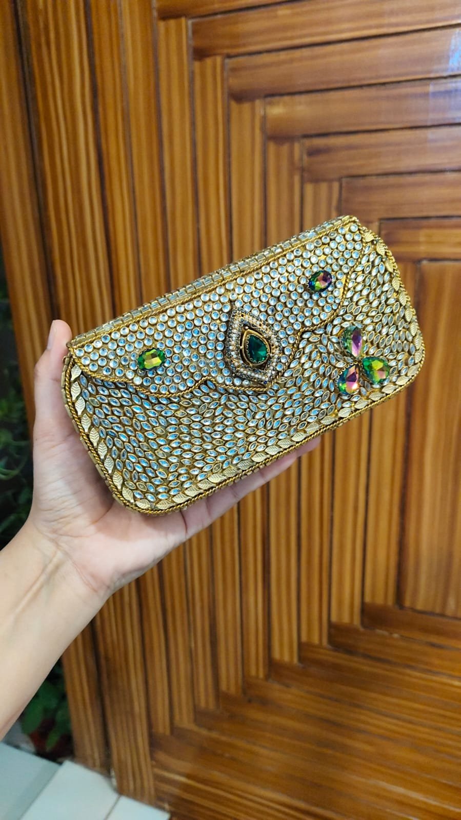 Perfect for weddings, festive events, and formal evenings, this clutch blends traditional charm with modern elegance. Spacious enough for your essentials and glamorous enough to steal the spotlight a true showstopper for your special occasions.