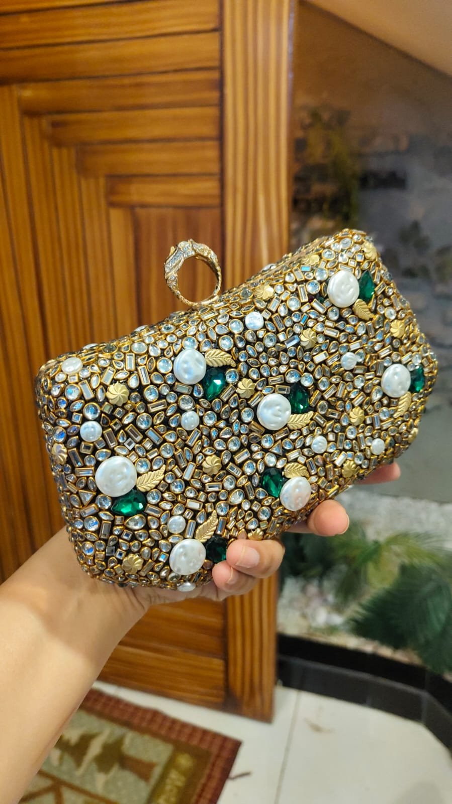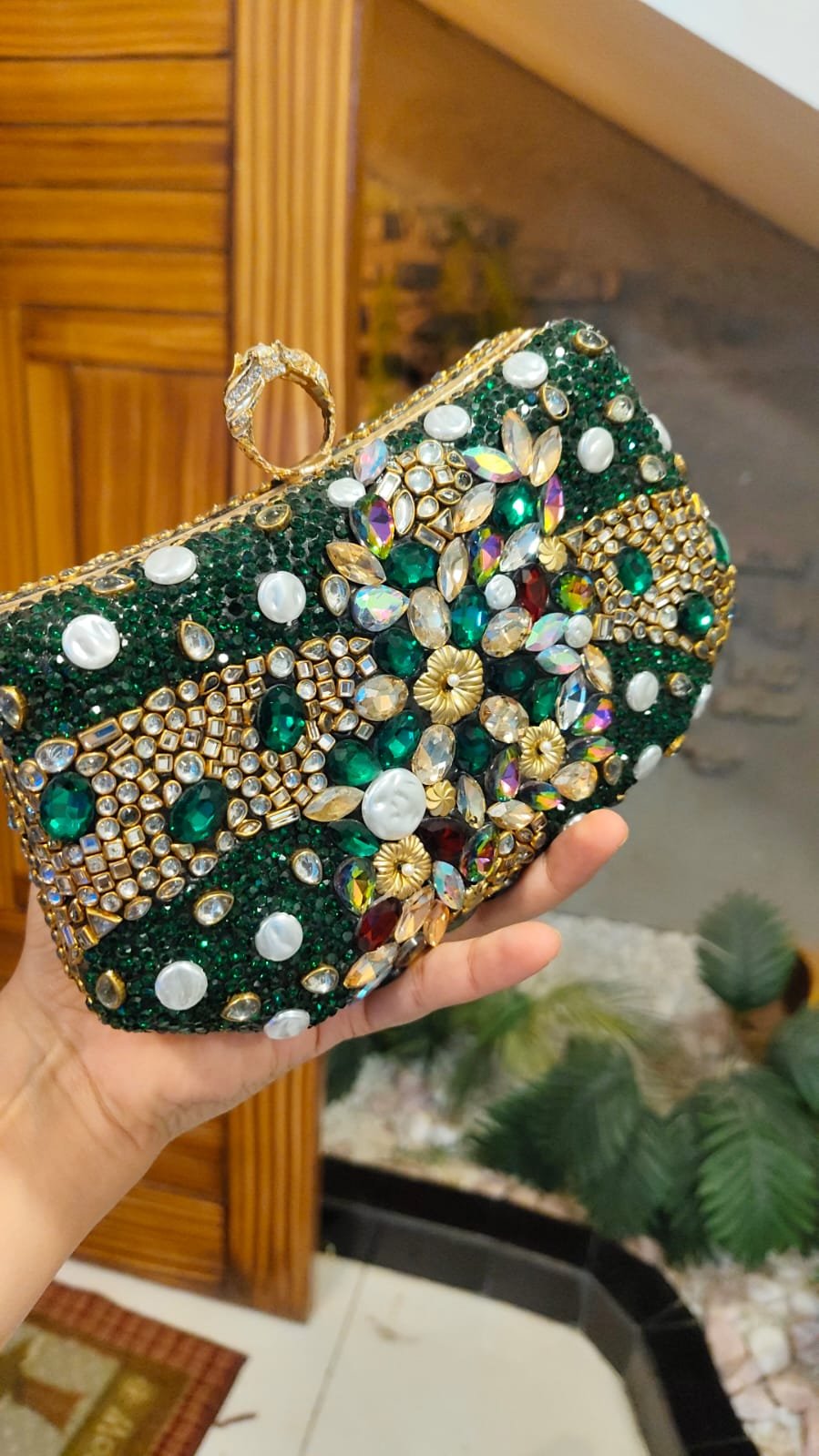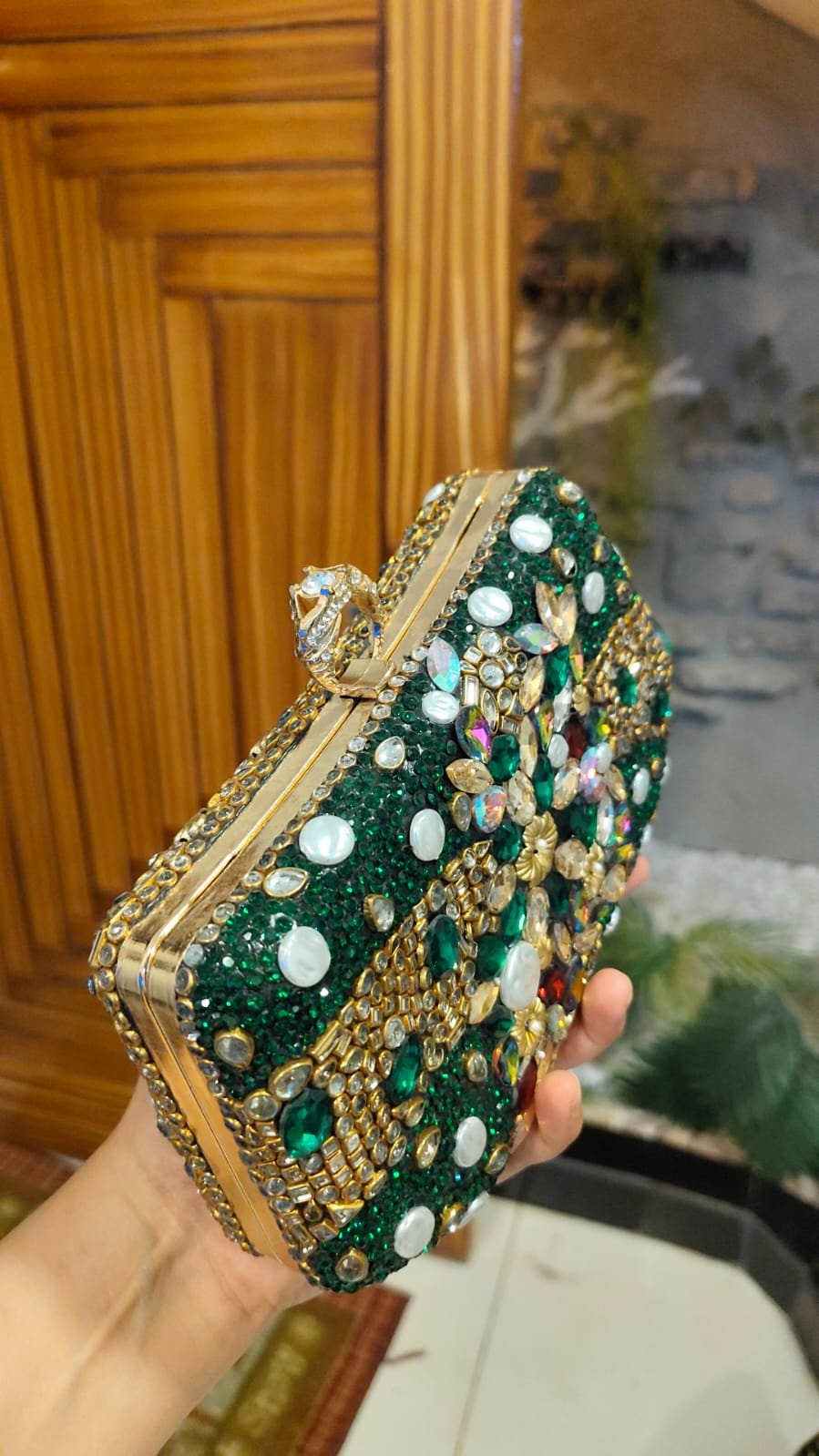 Perfect for weddings, festive events, and formal evenings, this clutch blends traditional charm with modern elegance. Spacious enough for your essentials and glamorous enough to steal the spotlight a true showstopper for your special occasions.