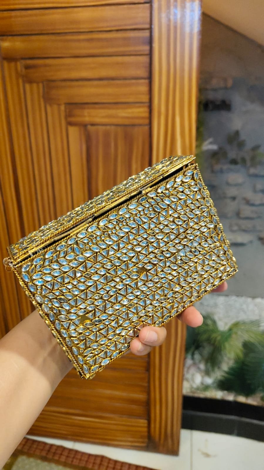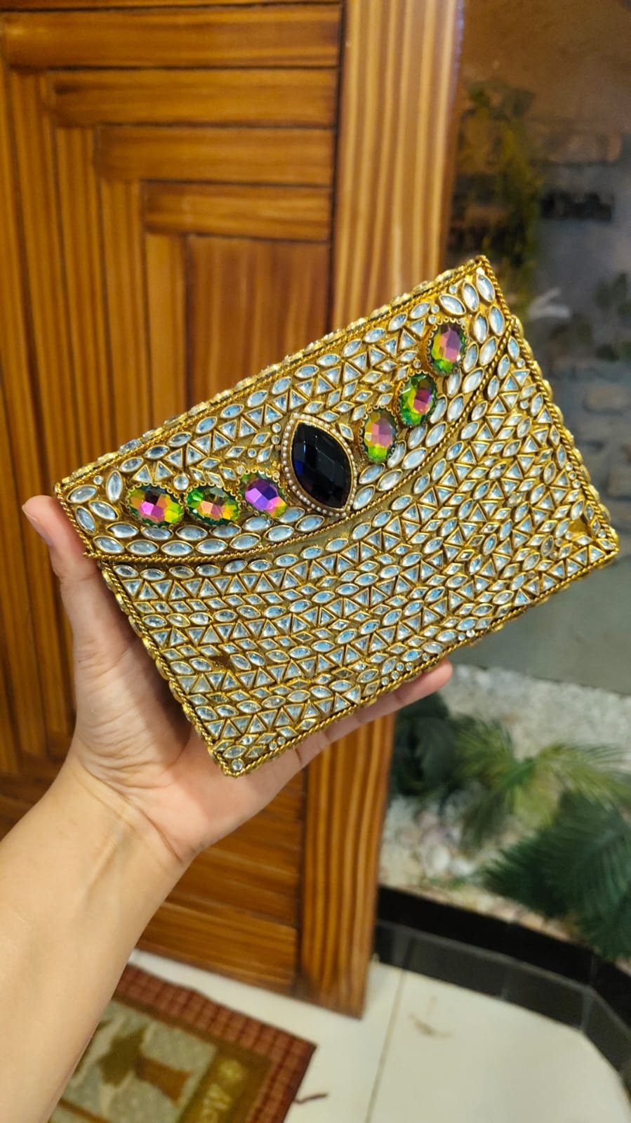 Perfect for weddings, festive events, and formal evenings, this clutch blends traditional charm with modern elegance. Spacious enough for your essentials and glamorous enough to steal the spotlight a true showstopper for your special occasions.