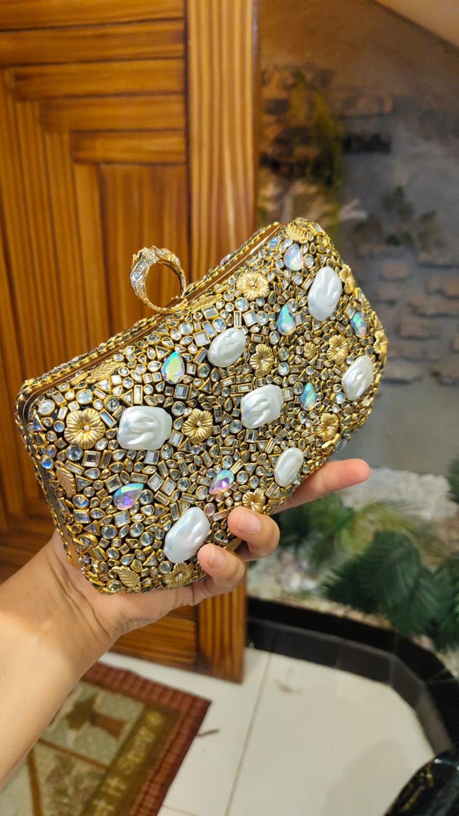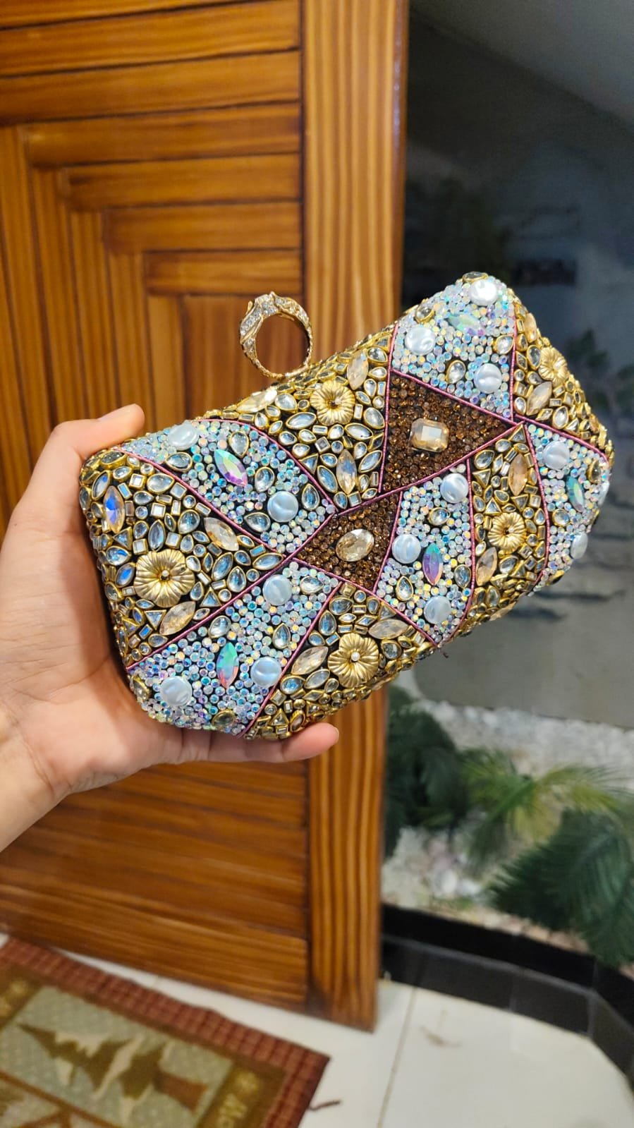 Perfect for weddings, festive events, and formal evenings, this clutch blends traditional charm with modern elegance. Spacious enough for your essentials and glamorous enough to steal the spotlight a true showstopper for your special occasions.