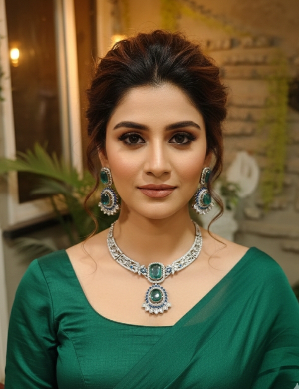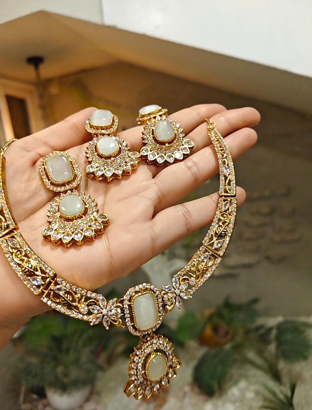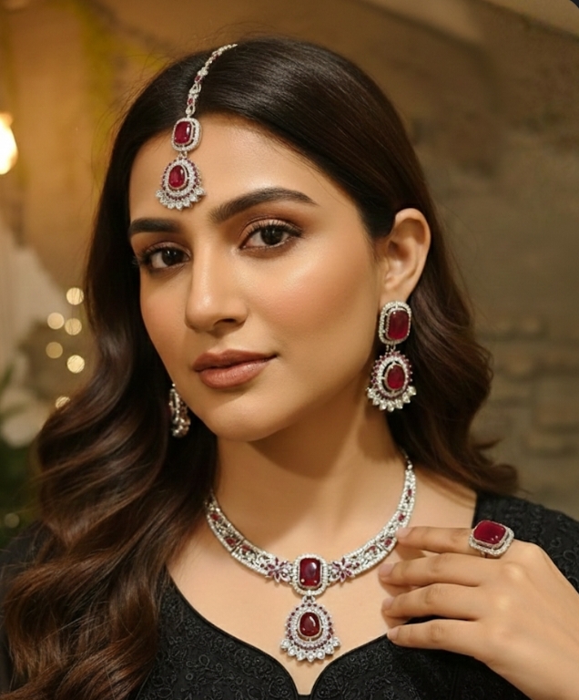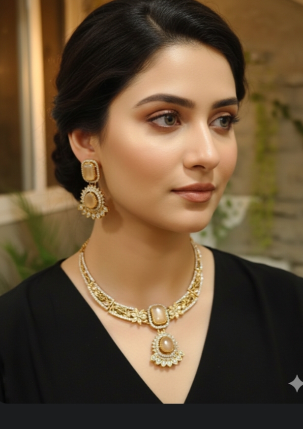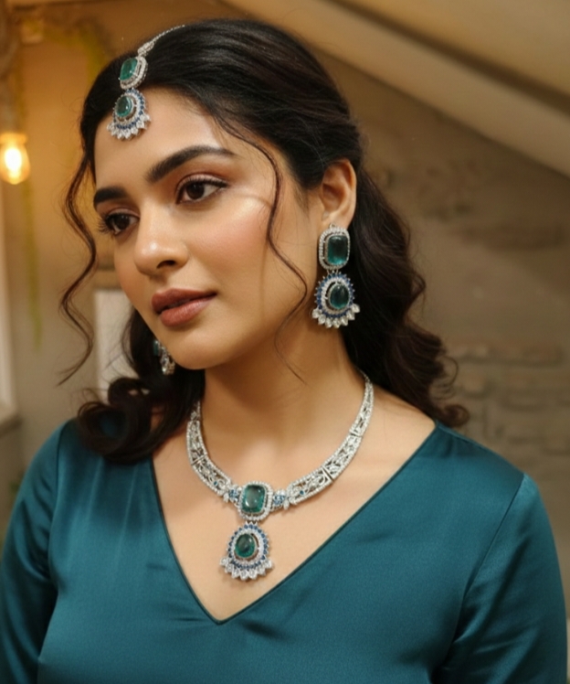 “A delicate wedding necklace crafted with sparkling stones, adding elegant shine to your bridal look.”