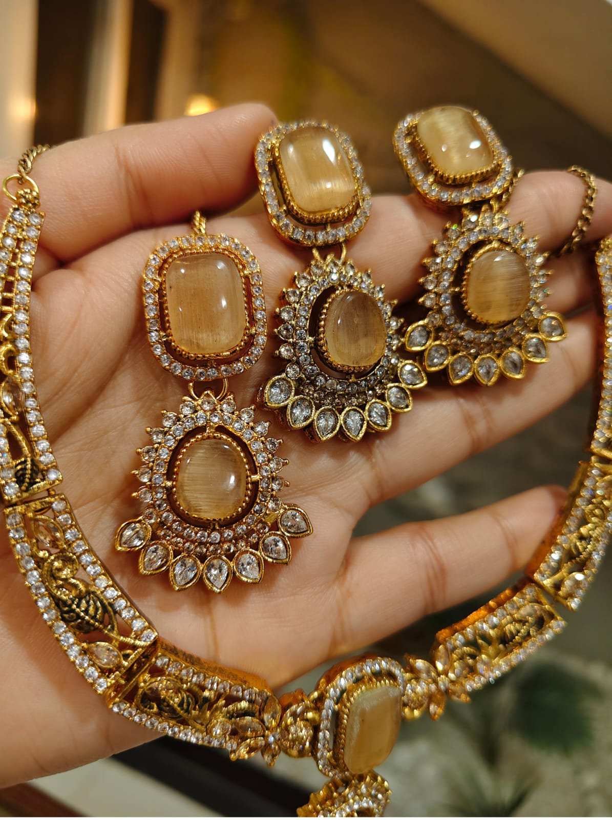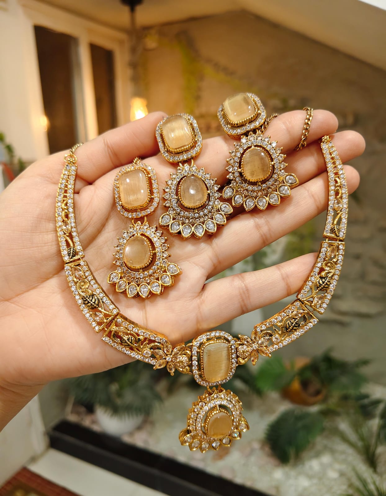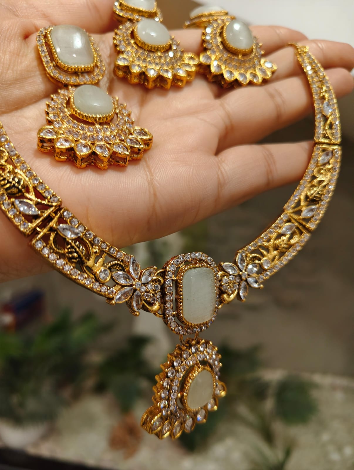 “A delicate wedding necklace crafted with sparkling stones, adding elegant shine to your bridal look.”