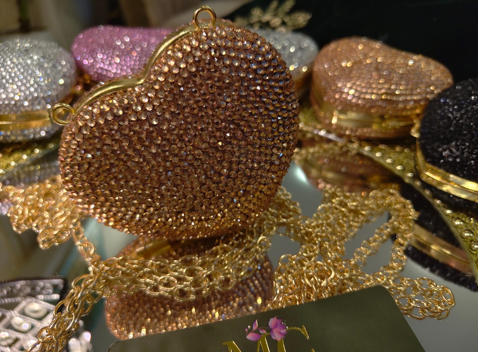 A radiant crescent clutch adorned with shimmering golden crystals, Golden Veil drapes your look in effortless luxury. Elegant, graceful, and timeless—perfect for festive nights and glamorous occasion.